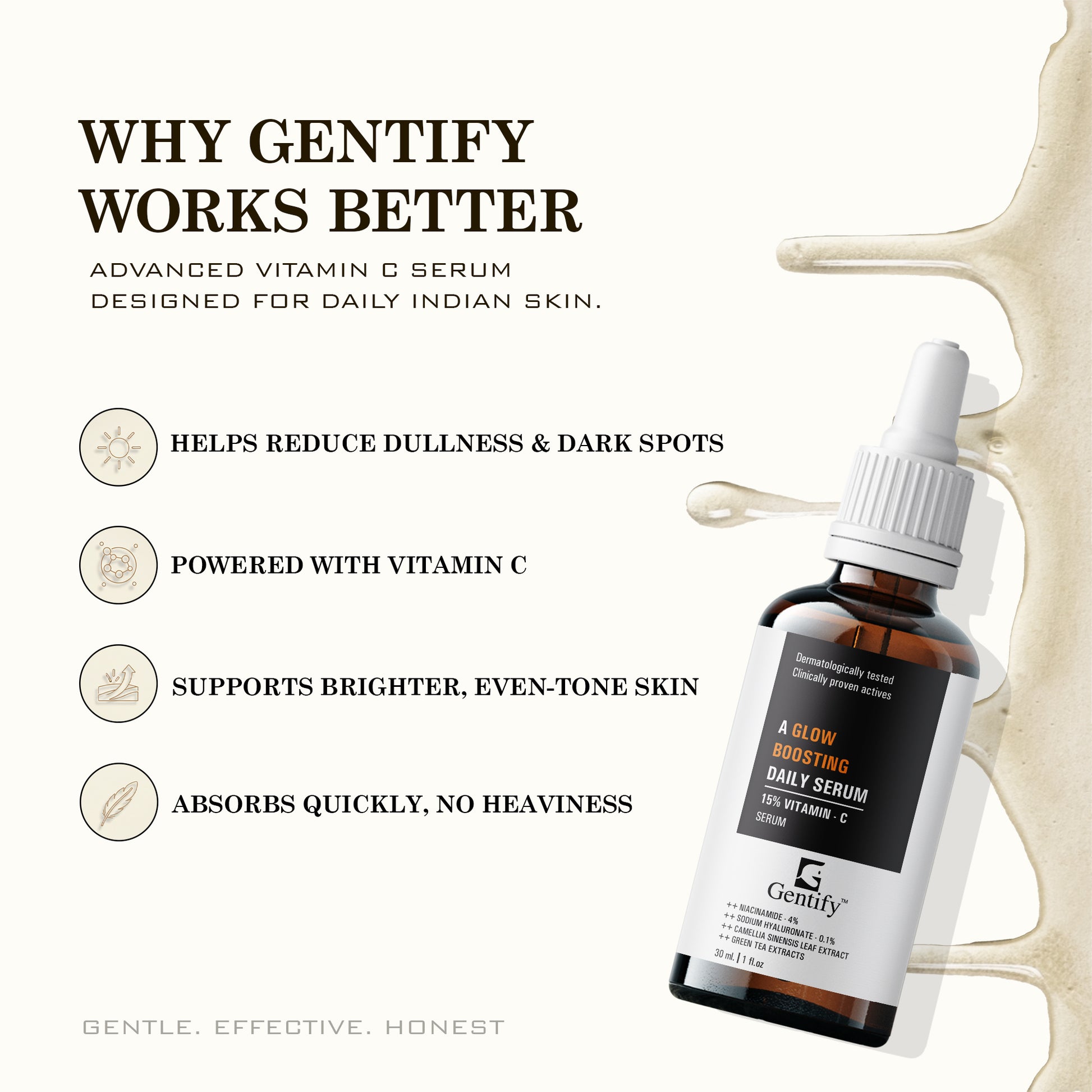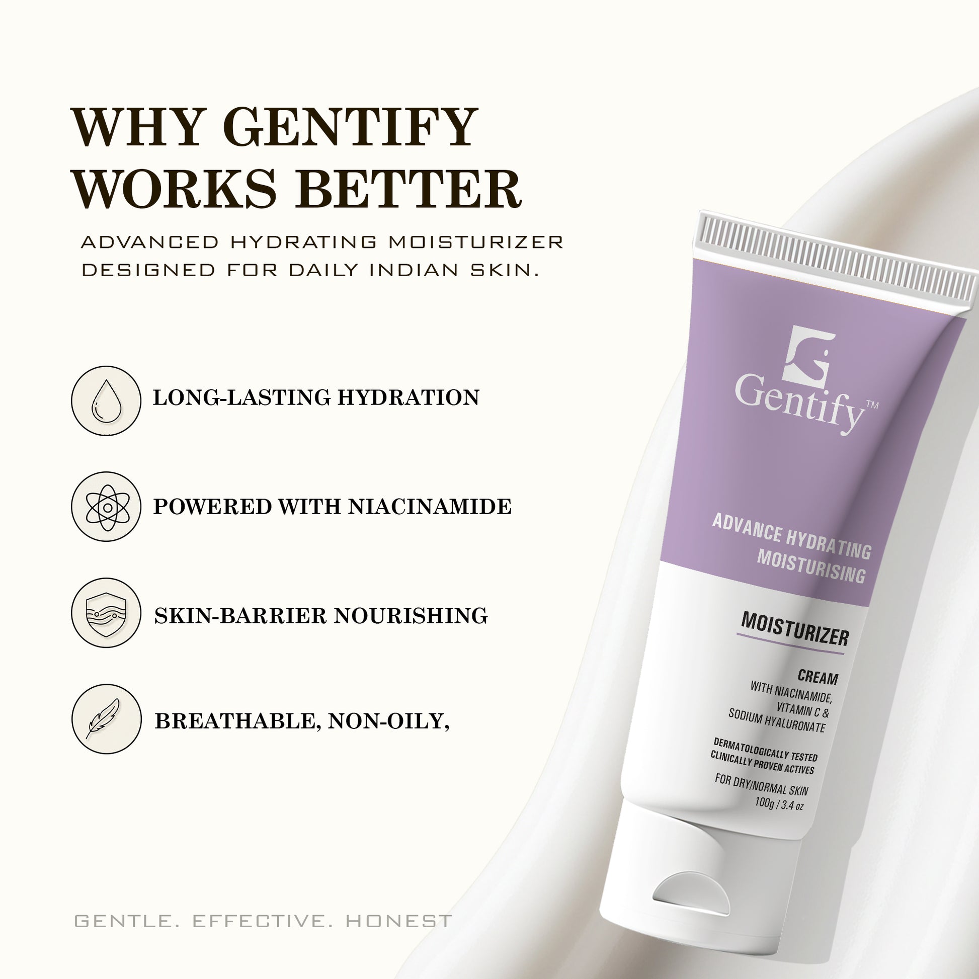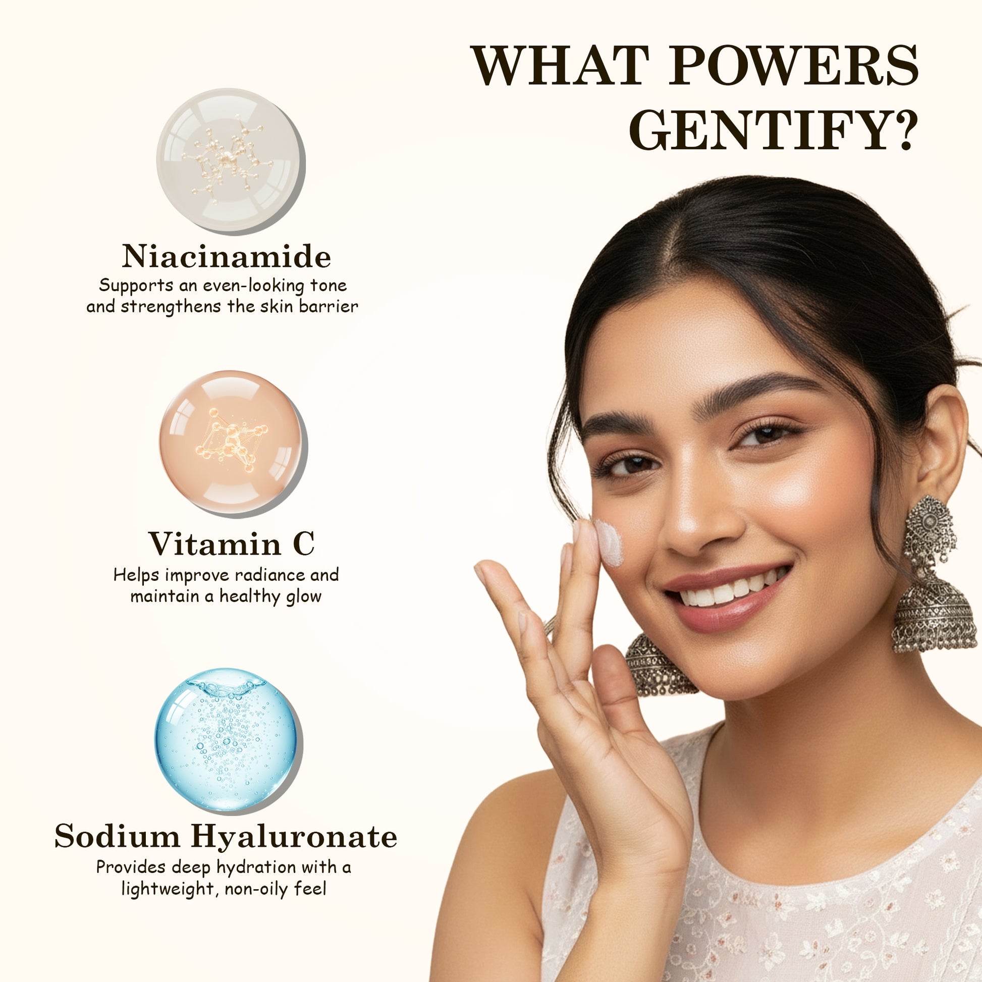 Protect your skin from harsh UV rays with GentifyCare Mineral Sunscreen SPF 50+++, a lightweight, hydrating, and brightening formula crafted for Indian skin. Enriched with Vitamin C, Vitamin E, and Hydration Lock Complex, it provides broad-spectrum UV protection while keeping your skin soft, smooth, and radiant. Perfect for daily use, it prevents tanning, pigmentation, and dullness without leaving any white cast.